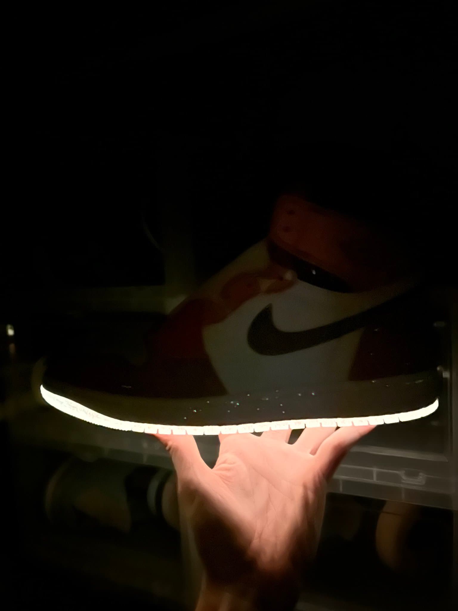 Another feature of the Jordan 1 High OG Across the Spider-Verse worth noting is the glowing outsole. When exposed to the light for a certain amount of time, the outsoles glow a bright white color.