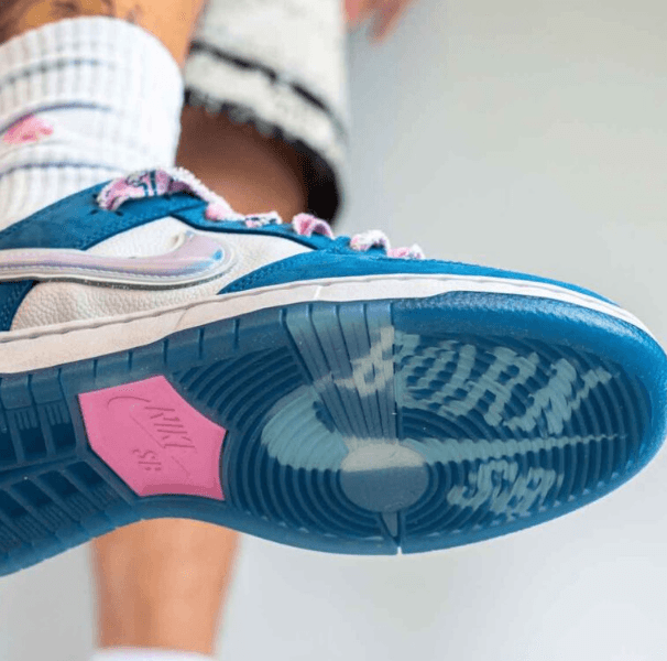 The collaboration between Born x Raised and Nike SB brought a stunning new look for the Dunk Low. Featuring a crisp combination of white and blue elements, the shoe showcases intricate perforations on the toe box, holographic heel panels, and Born SB branding on the tongues. Additionally, on the back of the midsoles, there is a 3D block that bears the Born x Raised signature mantra, "On the Turf," making the design even more special. "One Block At A Time," is tastefully embroidered on the forefoot and tongue tags, while the Swooshes and heel tabs are topped with holographic material. The "On The Turf" text is featured on the shoe's inner tongues and midsole heel, while co-branded logos adorn the insoles, tongue tags, heels, and outsoles. To complete the shoe's stunning look, the laces are heat-pressed with the words "In Loving Memory" and come with Born x Raised branded lace tips.