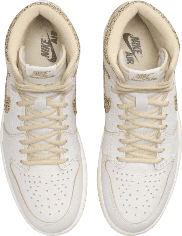 The Air Jordan 1 Retro High OG ‘Vibrations of Naija’ presents a subtle colorway of MJ's first signature shoe. Off-white tumbled leather is utilized on the upper, accented with a Pale Vanilla Swoosh covered in black speckling. The identical finish is applied to the high-cut collar, wrapped in ankle flaps branded with a Wings logo on the lateral side. A woven Nike Air tag embellishes the breathable nylon tongue. The high-top is mounted on a durable rubber cupsole, featuring off-white sidewalls and a cream-colored outsole.
