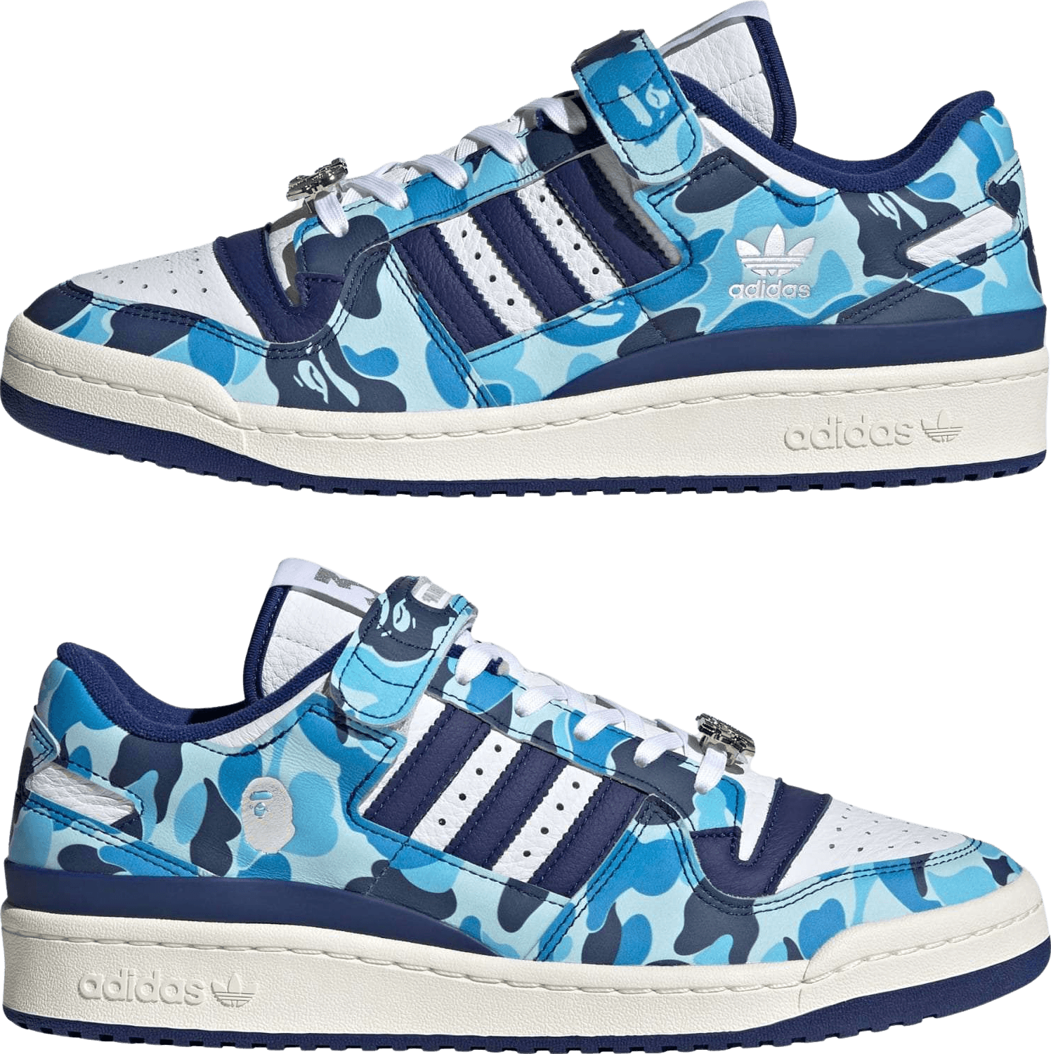 The original 1984 adidas Forum swept the cultural scene decades ago and earned the loyalty of athletes, rappers and the masses, too. In collaboration with BAPE, we took a trip to the archives and emerged with a modern spin on the iconic basketball-inspired silhouette. The most memorable design detail will always be the signature X and ankle strap, which mingle here with signature BAPE and adidas branding. Originally intended to support players' ankles, it's now a signature mark of timeless design. This release with BAPE shows off iconic BAPE ABC camo on the full grain leather overlays and sockliner cover, as well as on a set of extra laces you can swap out with the other two laces.