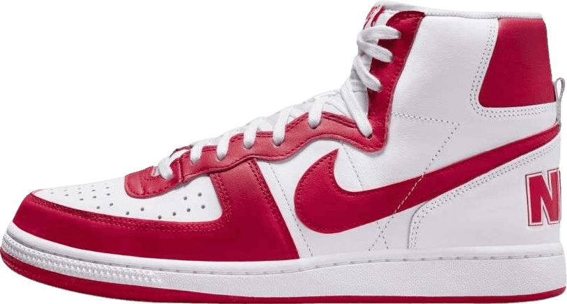 Untouched, unaltered and straight from the vault—you get the picture. The Terminator High lets you step back to the era of hook shots, knee pads and calf-high socks. Returning to the '85 original (Nike's first-ever signature school shoe), the throwback look stays easy-to-style with bursts of University Red against crisp White. Premium leather keeps your look smoother than backboard glass and retro branding delivers a big varsity finish. It's game time!