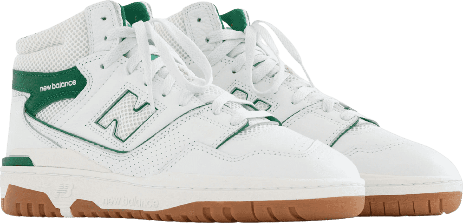 The New Balance Aimé Leon Dore 650R Green delivers a neutral colorway of a vintage ‘80s basketball shoe. Designer Teddy Santis dresses the high-top in a white tumbled leather/mesh upper, featuring a padded mesh collar and a signature ‘N’ logo. Dual Aimé Leon Dore and New Balance branding decorates the woven tongue tag, while mismatched heels display the ALD logo on the left shoe and a Flying NB logo on the right. The sneaker is mounted on a durable rubber cupsole, highlighted by vintage cream-colored sidewalls and a gum rubber outsole.