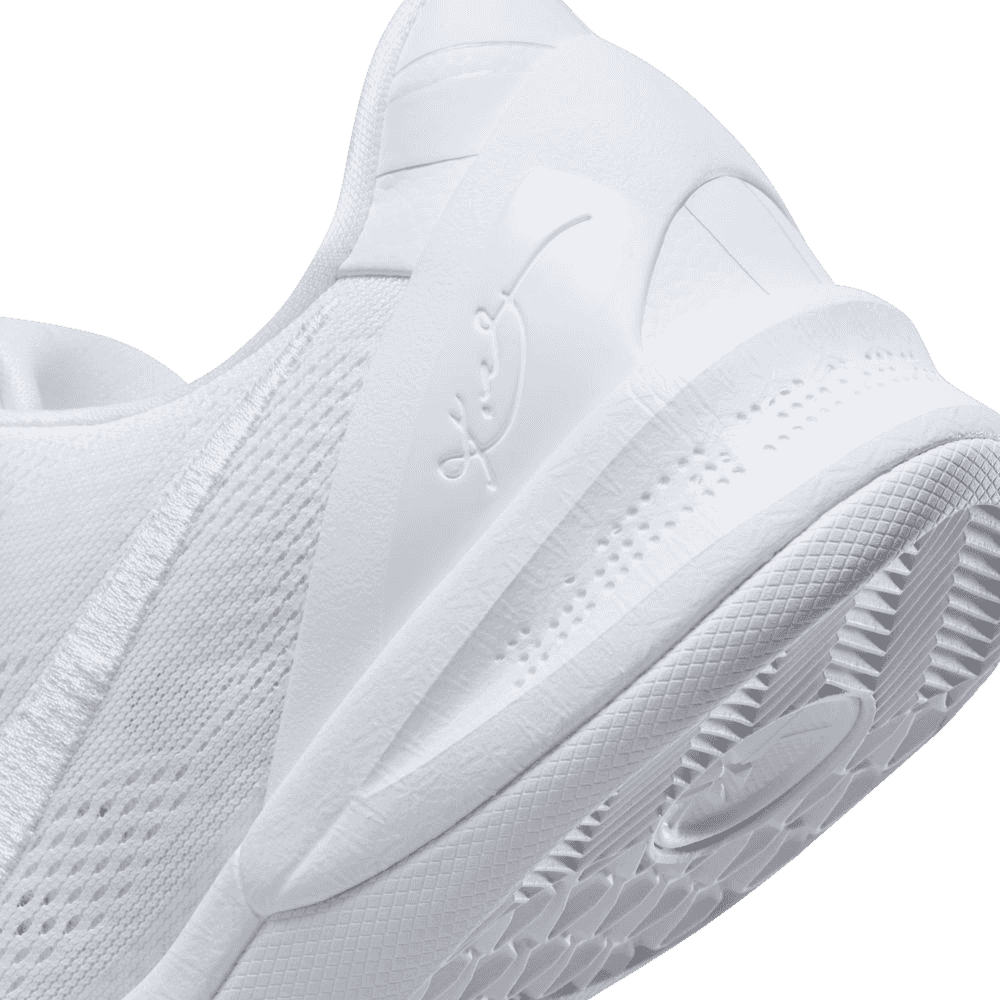 The exceptionally light, low-cut design (the same one that propelled Kobe through the 2011-12 season) is refreshed with a triple-white colorway and a React foam insert to help increase the energy in every step. Finishing in true Protro fashion, elevated embroidery and Kobe’s “Sheath” logo repeating on the midsole bring the Mamba Mentality to every step.
