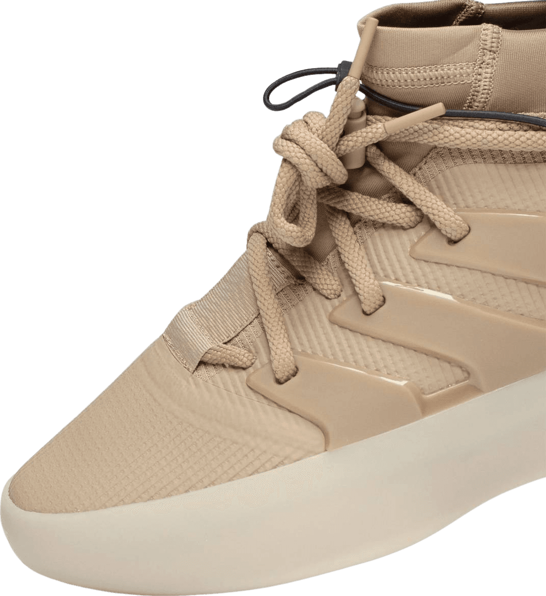 The adidas Fear of God Athletics 1 Basketball Clay debuts a hoops-inspired silhouette that bridges the divide between fashion and sport. A traditional lace closure combines with an ankle bungee to secure the Clay upper, crafted from knit textile with a stretchy neoprene collar. A molded midfoot cage, inspired by the Predator cleat, forms the shoe’s signature three-stripes. The sneaker rests on a white Lightstrike midsole, marked with a black bar on the heel that displays an embossed Fear of God logo. A herringbone-pattern rubber outsole yields grippy traction underfoot.