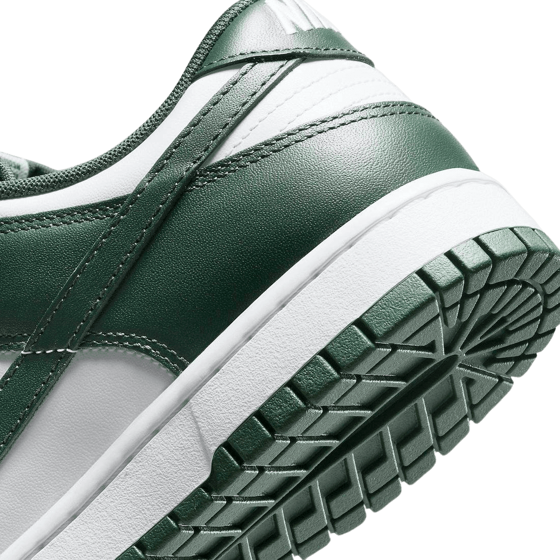 The Nike Dunk Low Michigan State delivers a low-top version of the Michigan State Dunk from 2020. Like its predecessor, the shoe features a two-tone all-leather upper rendered in classic ‘Be True to Your School’ color blocking. A stark white finish is contrasted by a dark green Swoosh and matching overlays at the toe and heel. Standard Nike branding hits decorate the heel and nylon tongue. The low-top is mounted on a durable rubber outsole, complete with a traction pattern originally developed for the hardwood.