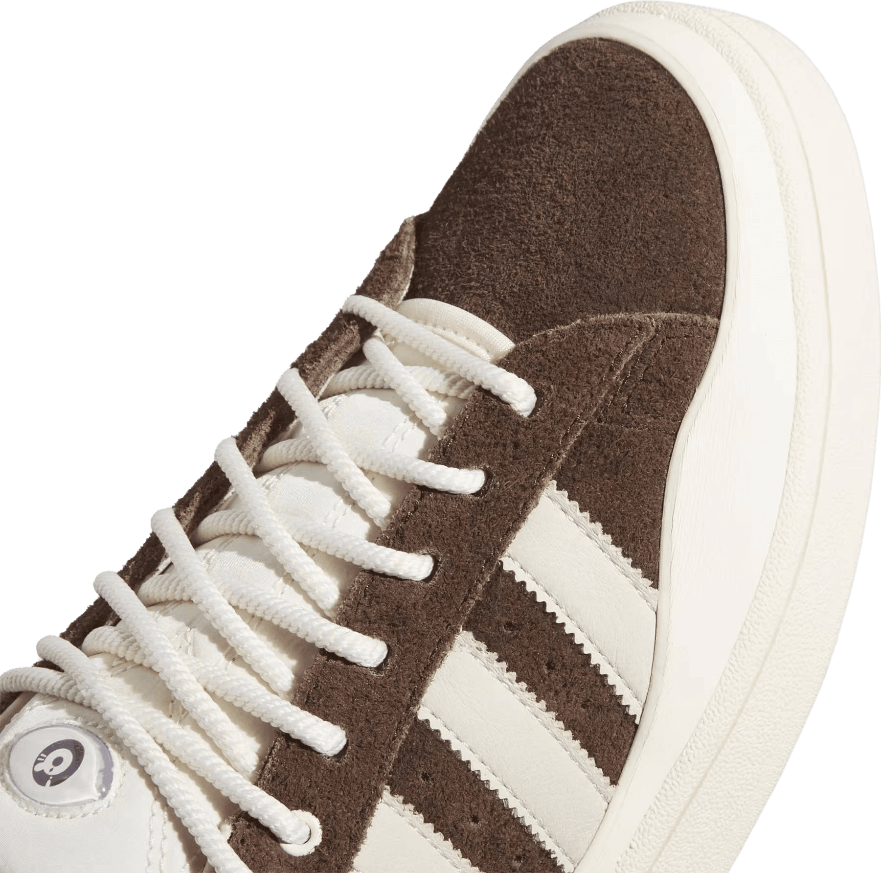 Classic adidas shoes inspired by Benito's signature on-stage brown mask, along with the cowboy and western motifs that mark his latest album release. These adidas x Bad Bunny shoes give a distinctive twist to the iconic Campus silhouette. Built with a double-tongue and double-heel construction that has become synonymous with our Bad Bunny drops. The last campus to launch in the series features a dark brown hairy suede material detailed by chalk white and pink accents. They're signed off with the Bad Bunny all seeing eye on the tongue and an adidas x Bad Bunny logo on the sockliner.
