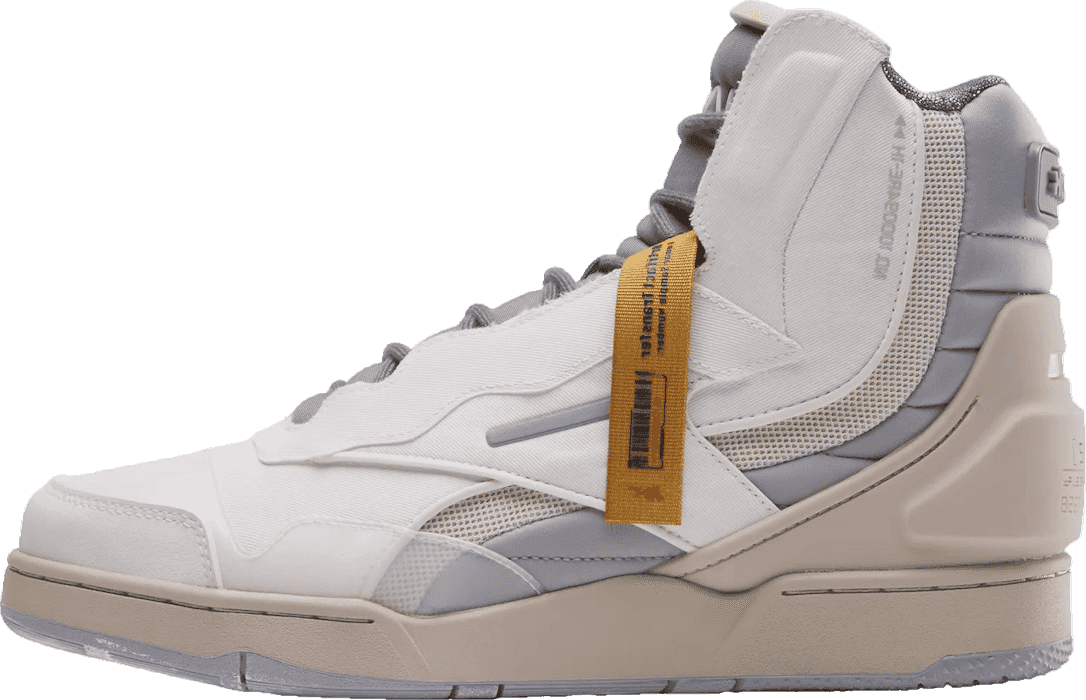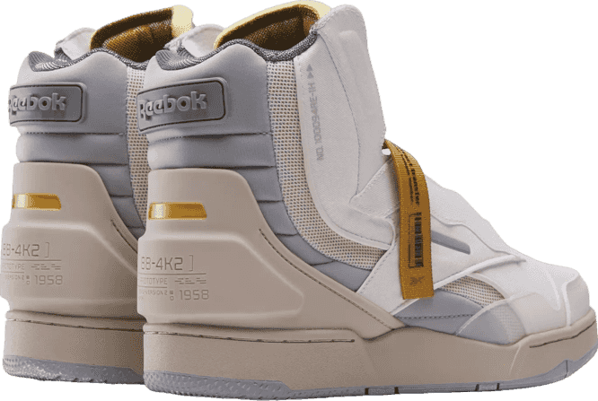 Inspired by NASA, these retro-futuristic Reebok basketball shoes have the vintage vibe of a garage sale find. The high-top silhouette features signature NASA details. Space enthusiasts will appreciate the custom graphics throughout. The organic creasing in the upper is reminiscent of the natural wear on a vintage space suit, adds a touch of authentic, time-worn character, making each pair look like they've journeyed through the decades and beyond.