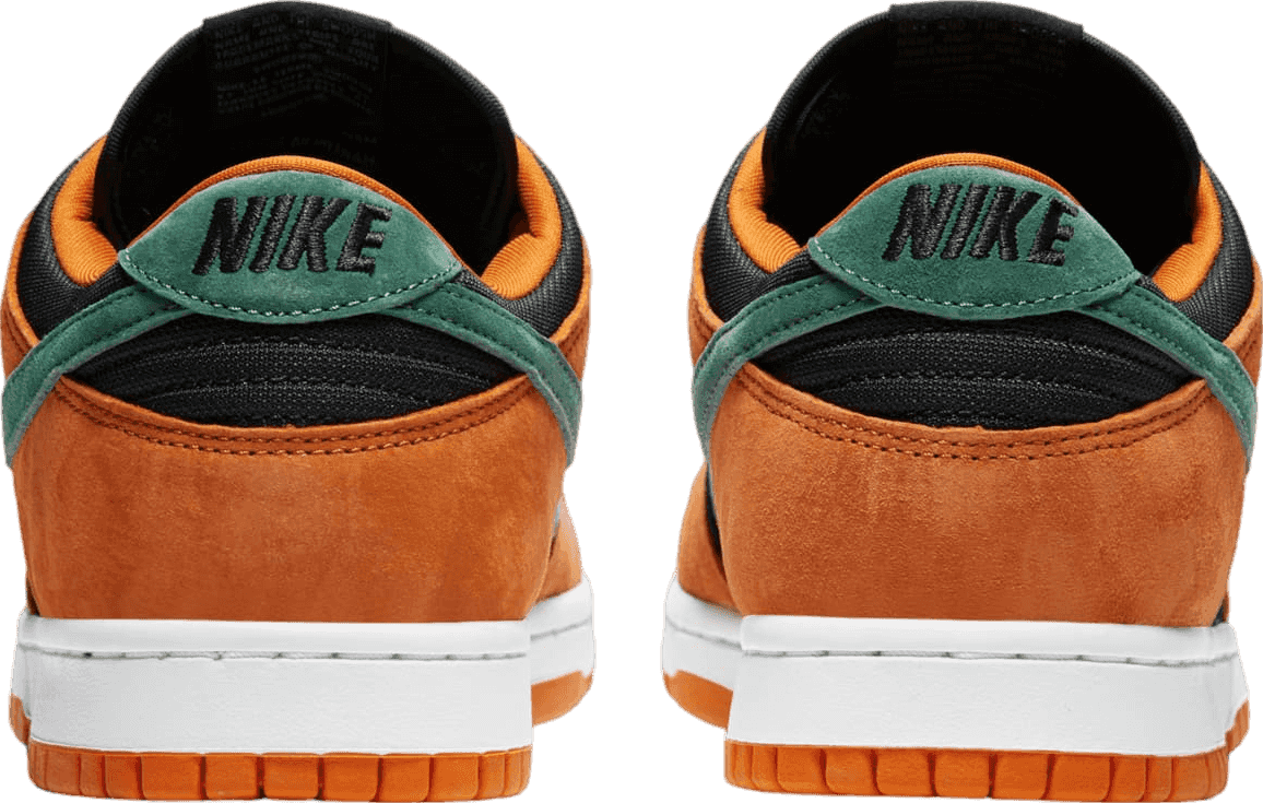 The Nike Dunk Low Ceramic brings back an original colorway from the CO.JP ‘Ugly Duckling Pack,’ released exclusively in Japan in 2001. Like the other pairs in the three-piece collection, the low-top highlights clashing hues on a premium suede upper. Here, the sneaker’s black base is contrasted by Ceramic orange overlays and Nori green hits on the Swoosh, laces and heel tab, embroidered with Nike branding. A second Nike wordmark adorns the woven tag atop the mesh tongue.