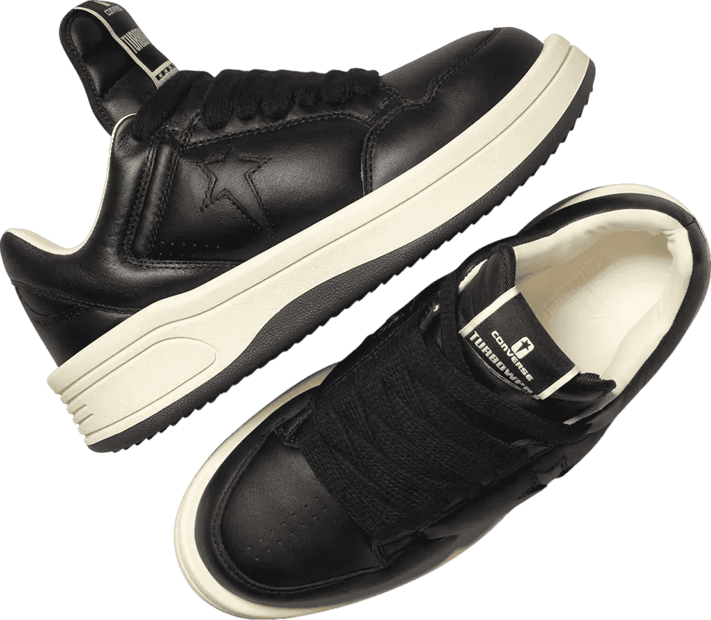 A bold collision of rebellion and nostalgia, the Rick Owens x Converse TURBOWPN OX reimagines a basketball classic through an avant-garde lens. This low-top iteration of the Weapon silhouette features exaggerated proportions, sharp lines, and Owens’ signature minimalist-meets-brutalist aesthetic. Crafted with a premium leather upper in a sleek, monochrome palette, the sneaker brings elevated edge to a retro court staple. Finished with co-branded details and a chunky midsole, it’s a fashion-forward twist on sport heritage that blurs the lines between streetwear and high fashion.